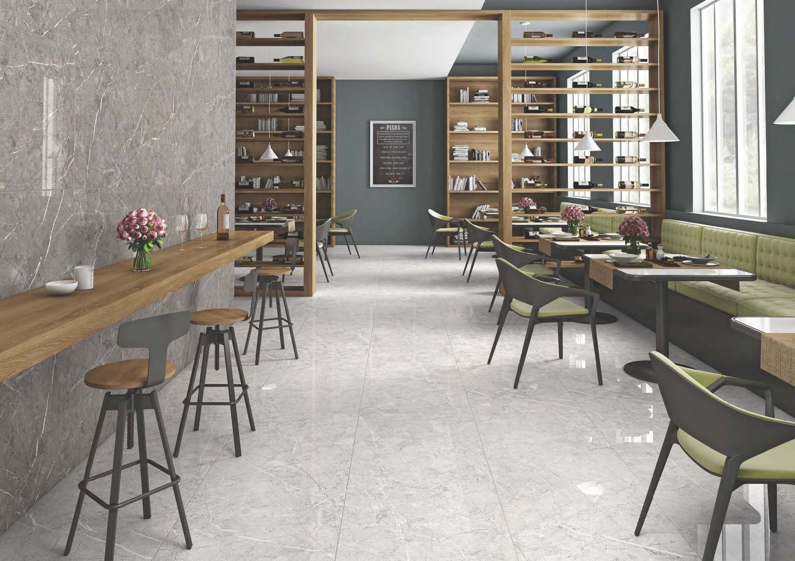 THE GLOSSY FINISH TILES IMMERSE A PLACE IN THEIR REJUVENATING AURA ACQUIRED BY THE SHINY SURFACE THAT BRIGHTENS UP A ROOM.