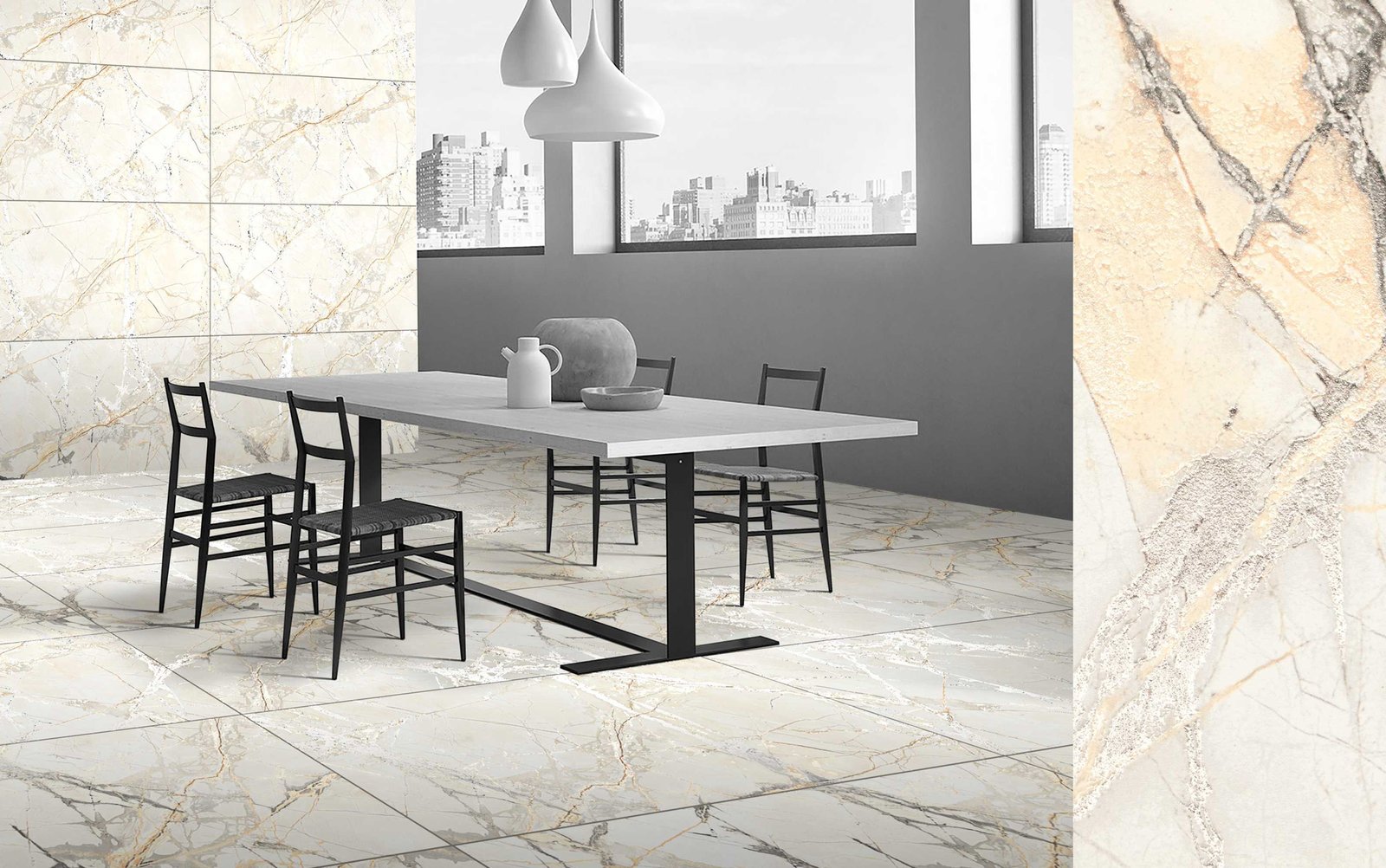 THE CARVING FINISH TILES PROMISE AN EXQUISITE ENVIRONMENT WITH THEIR DETAILED DESIGN AND AESTHETICALLY RICH CHARM.